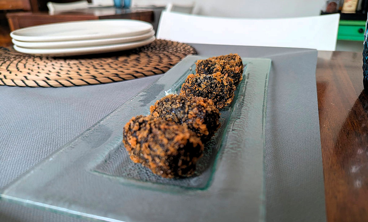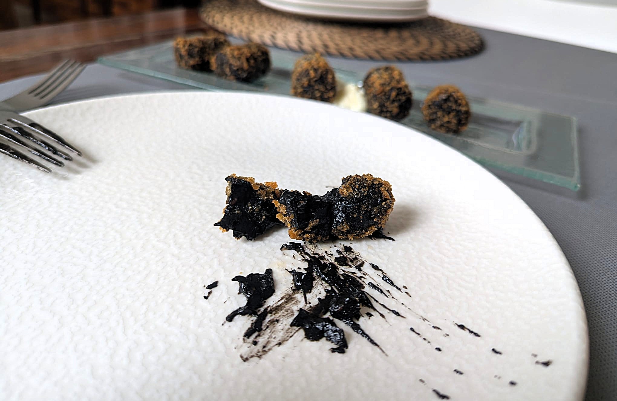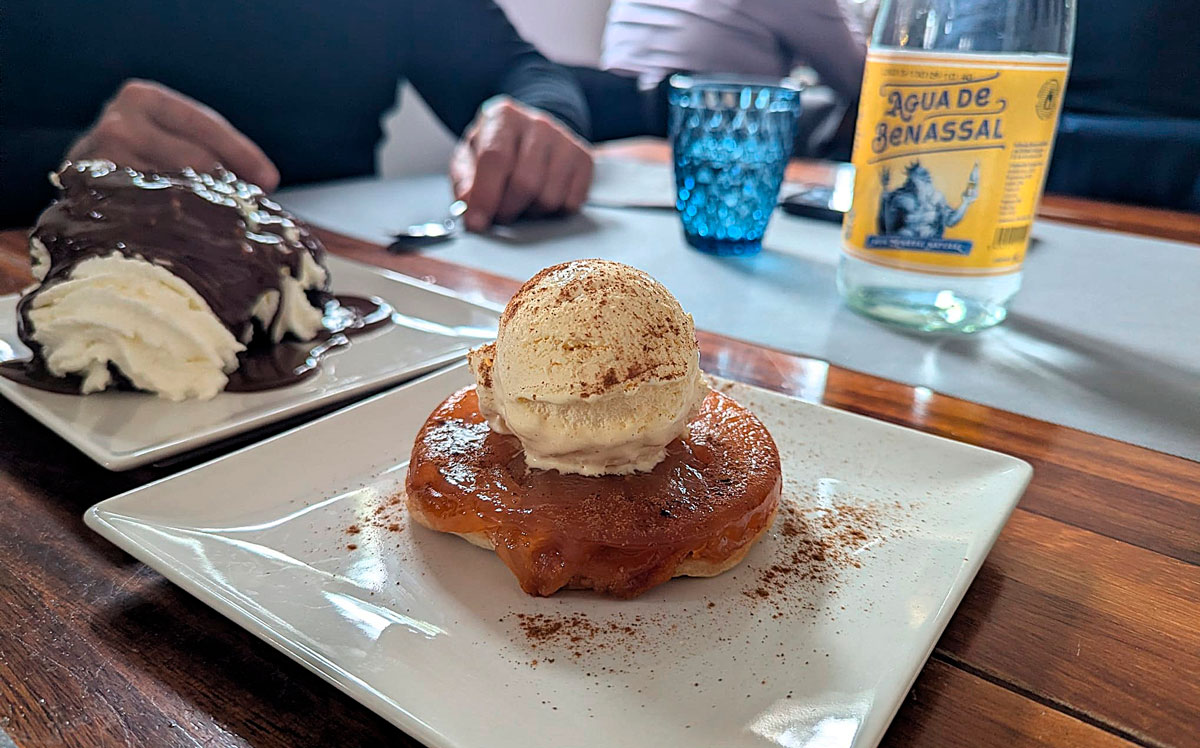 Vam triar un arròs negre, amb el punt de cocció molt encertat, que feia gust de glòria, i unes croquetes de calamaret impecables. Per a tancar amb dolçor, un pastís de poma més que exquisit i un brownie amb nata i salsa de xocolata.